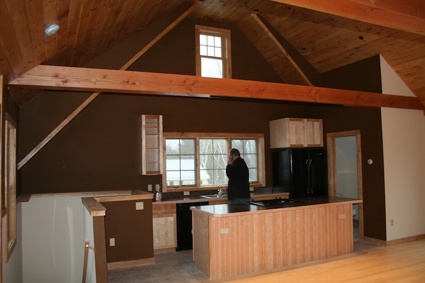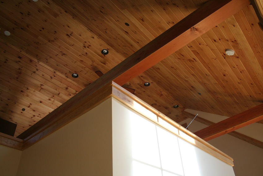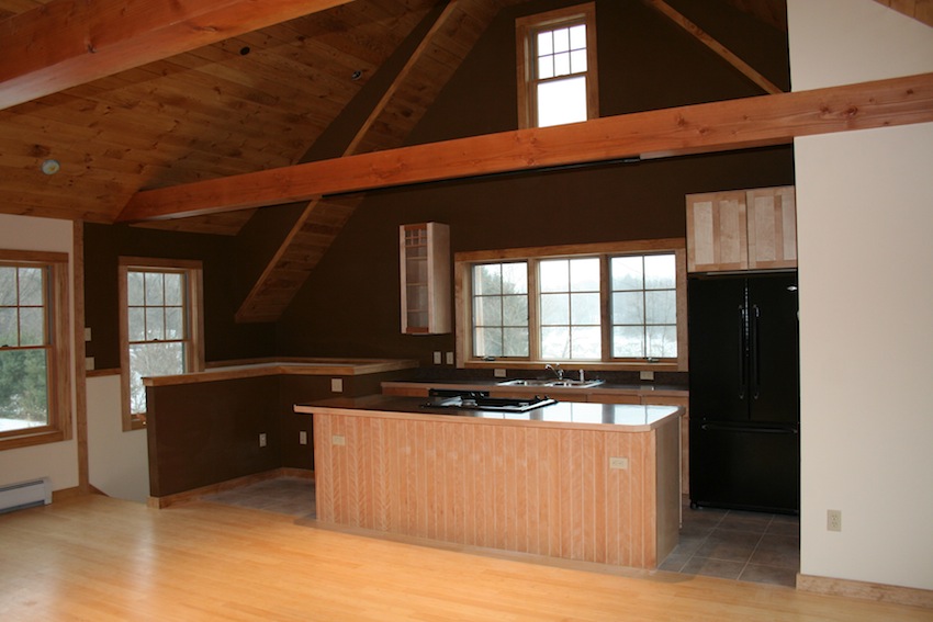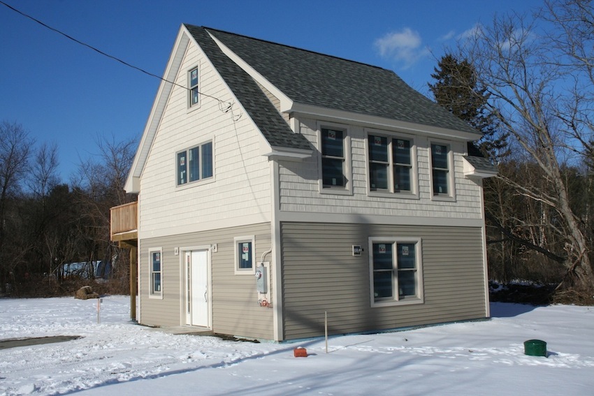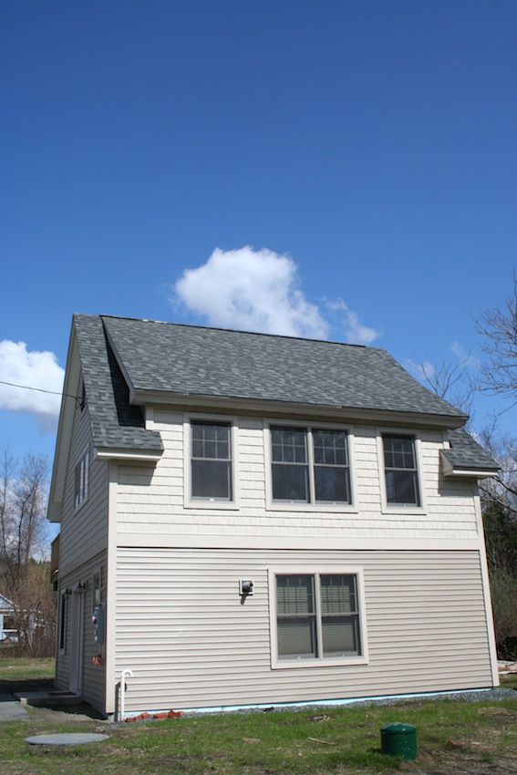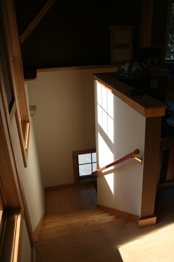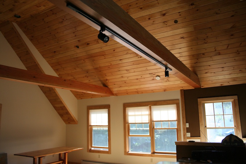 This house was built for an artist on the footprint of a 24' x 24' garage. The local zoning officer prohibited us from expanding horizontally, so after insulating the slab, we added a story vertically.